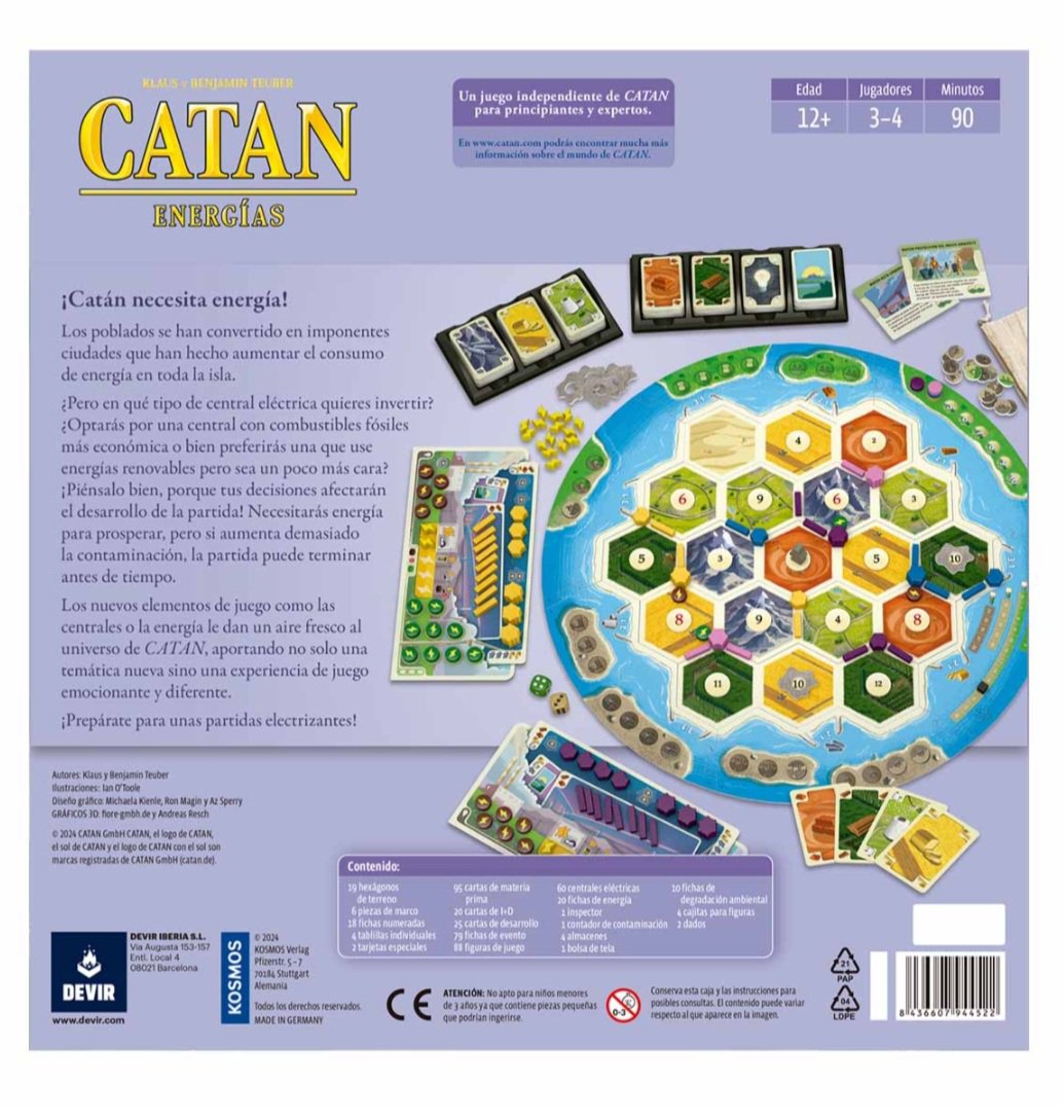 Los nuevos elementos de juego como las centrales o la energía le dan un aire fresco al universo de Catan, aportando no solo una temática nueva sino una experiencia de juego emocionante y diferente.